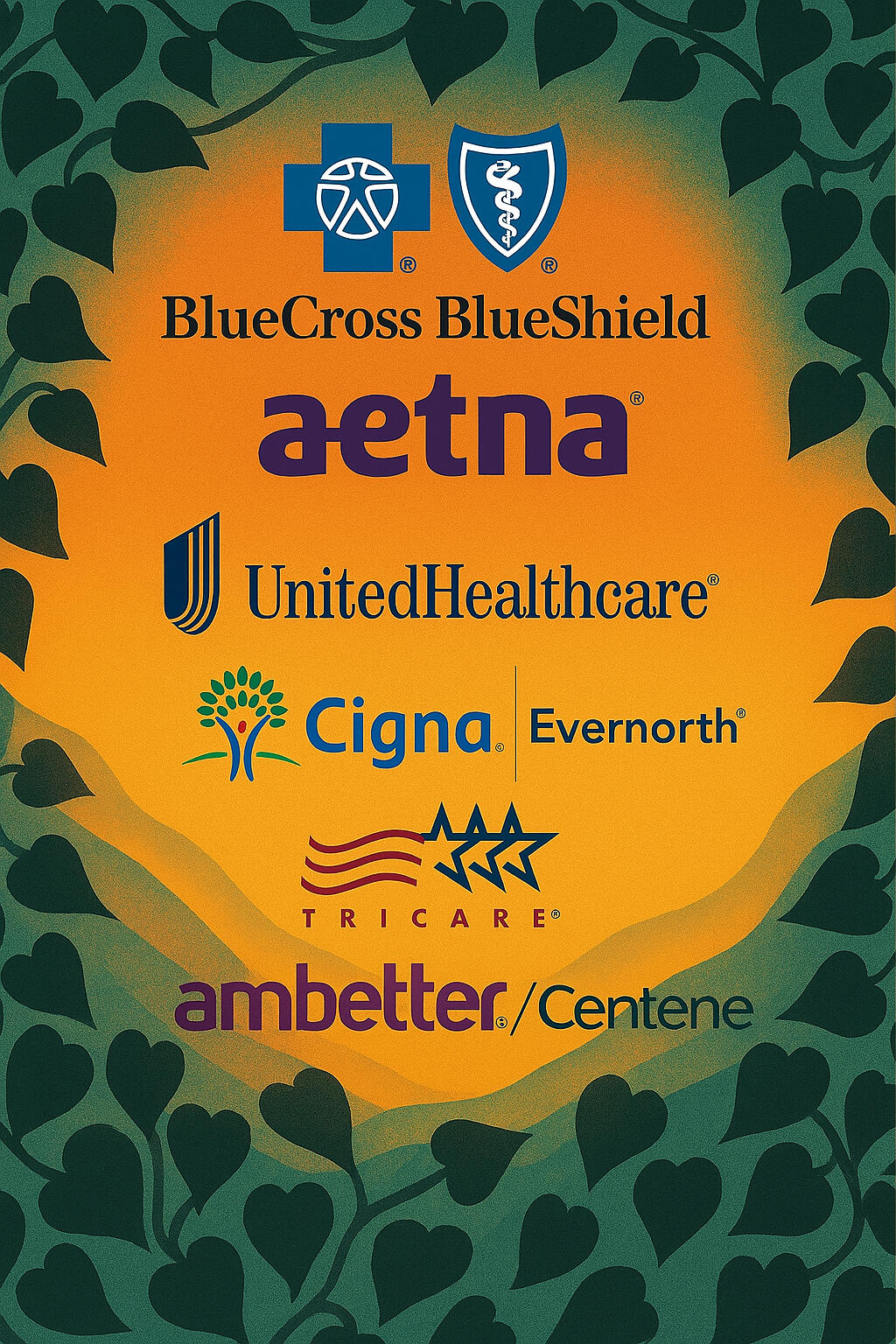 Note: Keep checking back because I'm actively working towards partnering with the below insurance providers to better serve clients. If you don't see your insurance carrier below, just let me know!